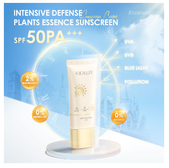 Intensive Defense: Enriched with SPF 50 PA+++, it has excellent 360 broad-spectrum protection, not only against UVA rays of skin aging and UVB rays of sunburn but also against blue light for intensive UV shield; and add POLYGONUM FAGOPYRUM and CROCUS SATIVUS two plant extracts to reduce the risk of sun-induced skin cancer. Anti-pollution: Added ALTHAEA OFFICINALIS plant extract, which can protect the skin from directly touching pollution particles and form an anti-pollution protective film.2% NIACINAMIDE: Add 2% Niacinamide to inhibit melanin growth, correct and naturally brighten skin tone. HYALURONIC ACID: Added the best moisturizing ingredients HYALURONIC ACID, to keep skin soft and supple. Ingredient Safe: Alcohol-free, mineral oil-free, mild ingredients, non-comedogenic, suitable for all skin types, best for dry skin.