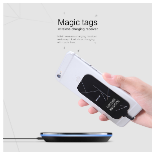 Magic tags wireless charging receiverProduct specification :Output : 5V/1A(Max )Charge efficency: ≥70%Standard : QI wireless charging standardCompatible with: