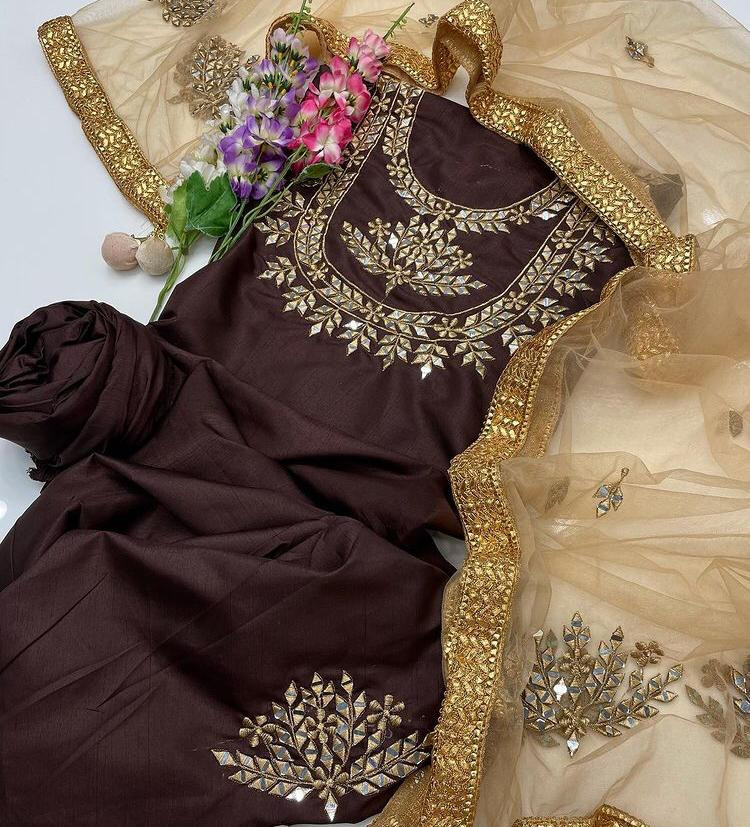 Dupatta : Tissue With Embroidery Work.