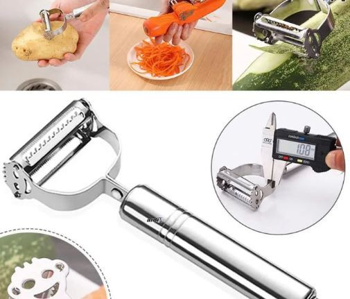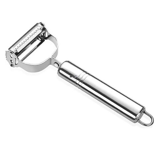 Product Name: Stainless Animate Vegetable Peeler or Vegetable Bark Remover Material: stainless animate Color: argent Blade: Double Brand Made from aerial assignment stainless animate material, it is rustproof. Comfortable handle with blind angle Durable zinc and stainless-steel architecture Dishwasher safe Sharp stainless animate brand peels calmly Hole in handle for accessible blind storage
